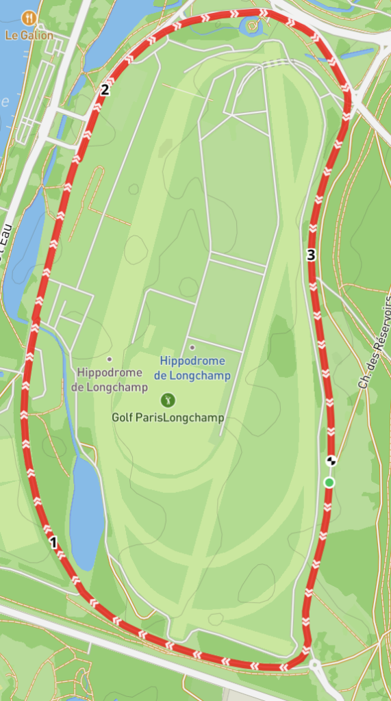 6 boucles de 3,5 km entièrement sur l’anneau de Longchamp, soit un total de 21 km